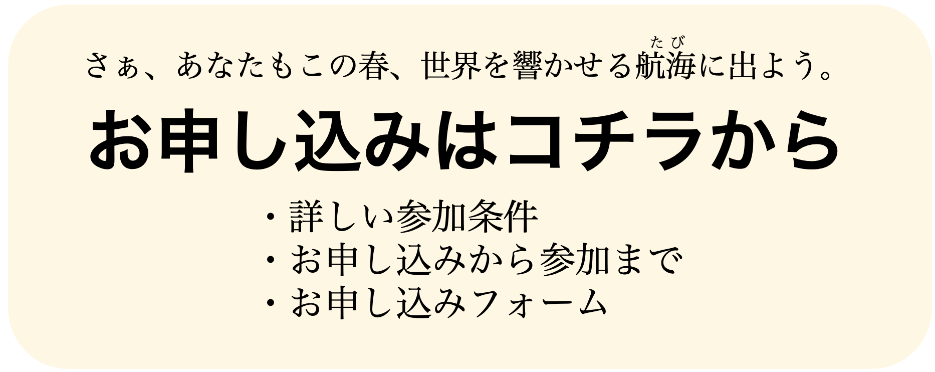 リピーターの方でサポートメンバーを務めてくださる方は、プロジェクト参加費が5,000円引になります!(*サポートメンバーの方には、一般メンバー以上に積極的にご参加いただき、運営及び一般メンバーのサポートをしていただきます。)