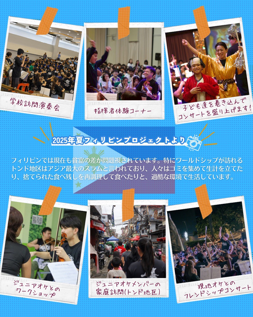 午前:学校訪問演奏会(予定) 午後:トンド地区の子どもたちの家庭訪問、教会コンサートwith SPAPCO(予定) 夕刻:マニラ交響楽団とのリハーサル |